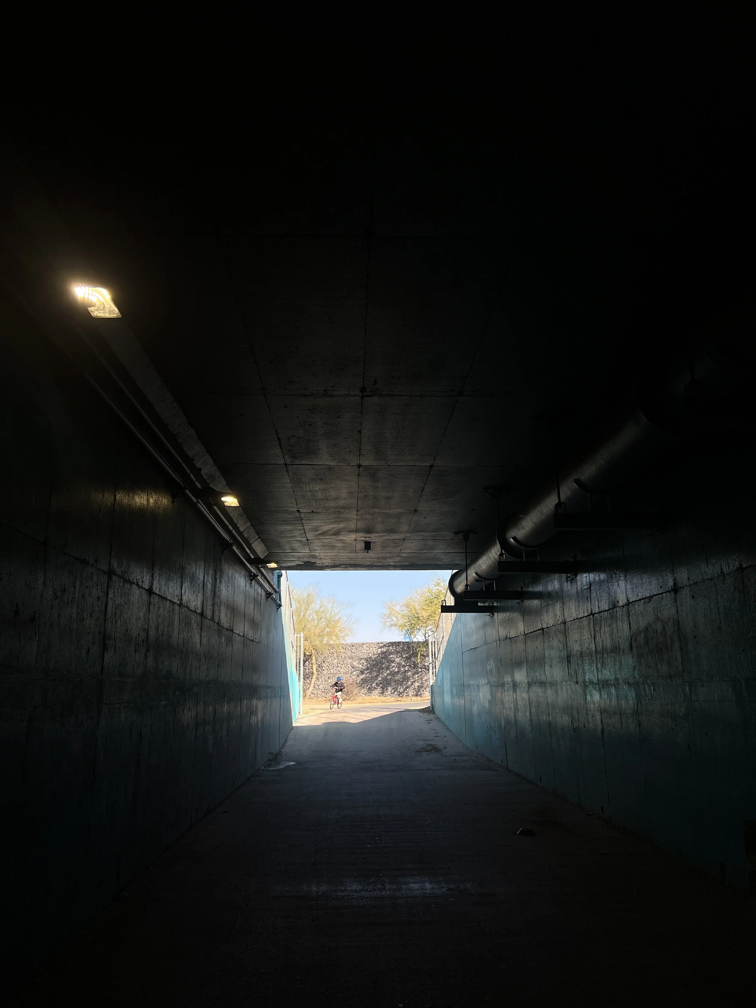 After we finished the run, we went through this underpass to get to our car. It was my son’s favorite place because he could ride his bike down the big slope and go really fast.