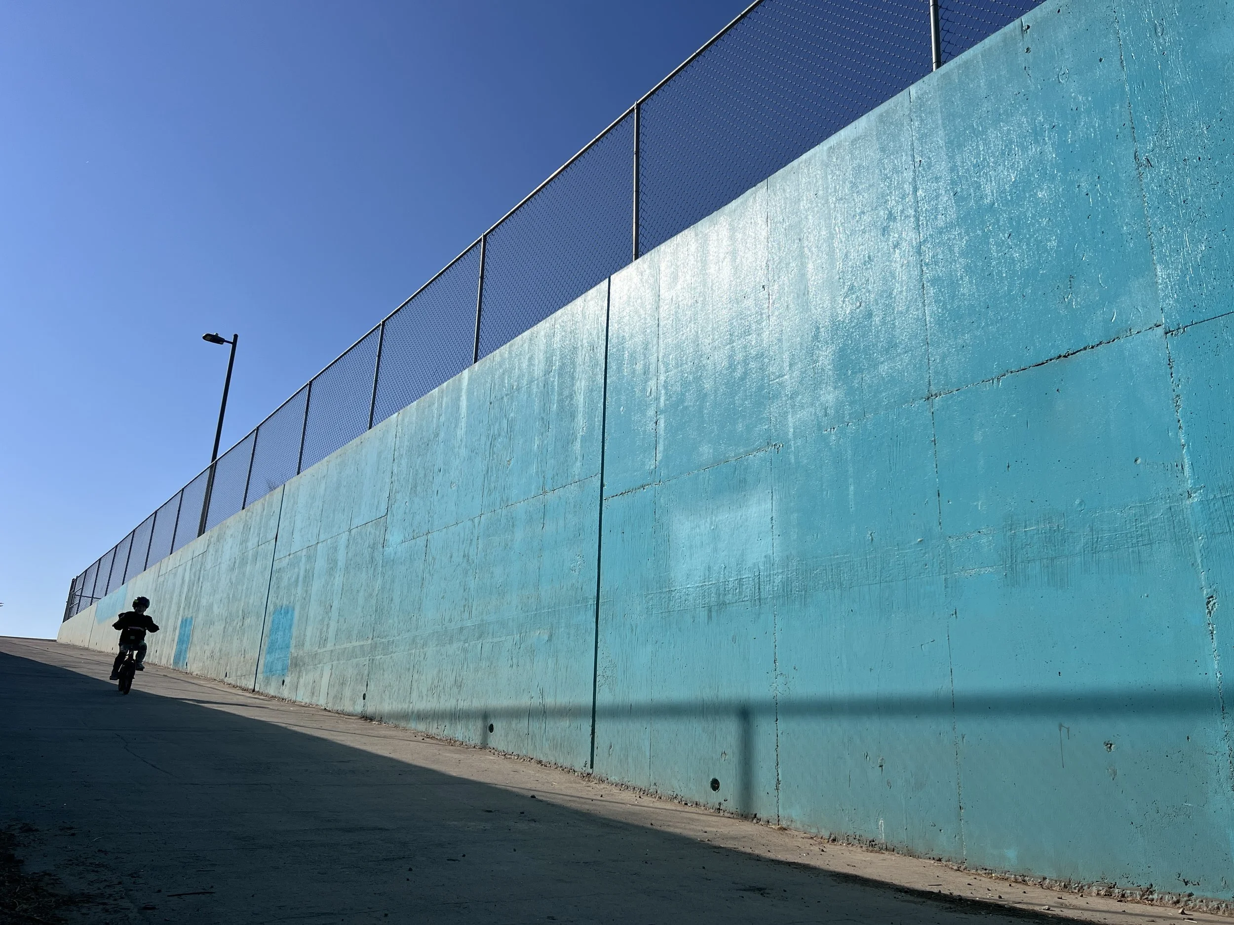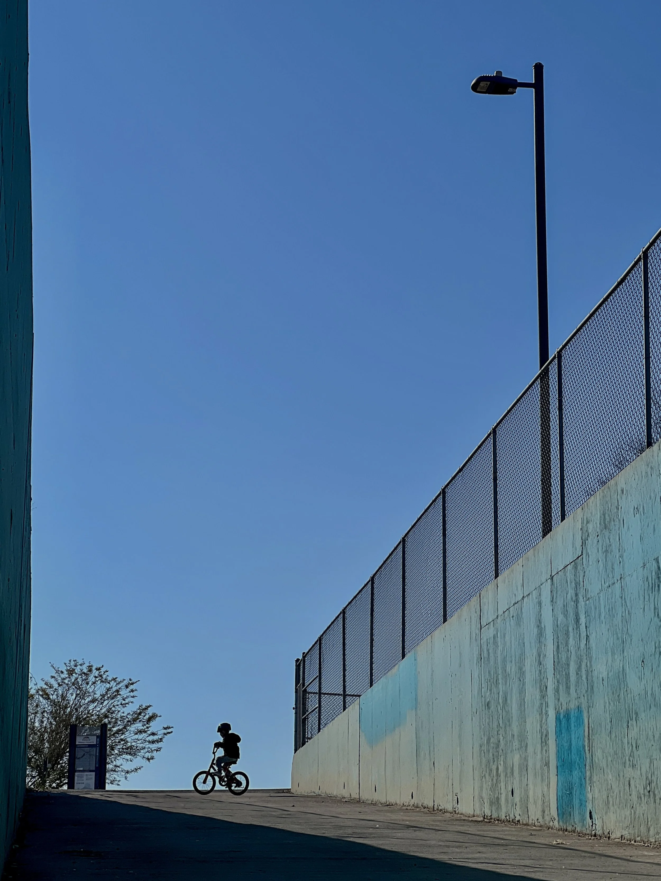 When I got closer to the bottom of the slope, I realized that if I got lower — as in literally squatting down, I could position my son against the sky. It was fun to wait for him to be on the side to catch the full silhouette of him and the bike. Along with the other shapes I see in the image, it is definitely more graphic/aesthetic-driven than a moment driven image.